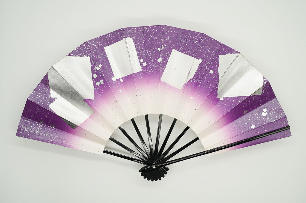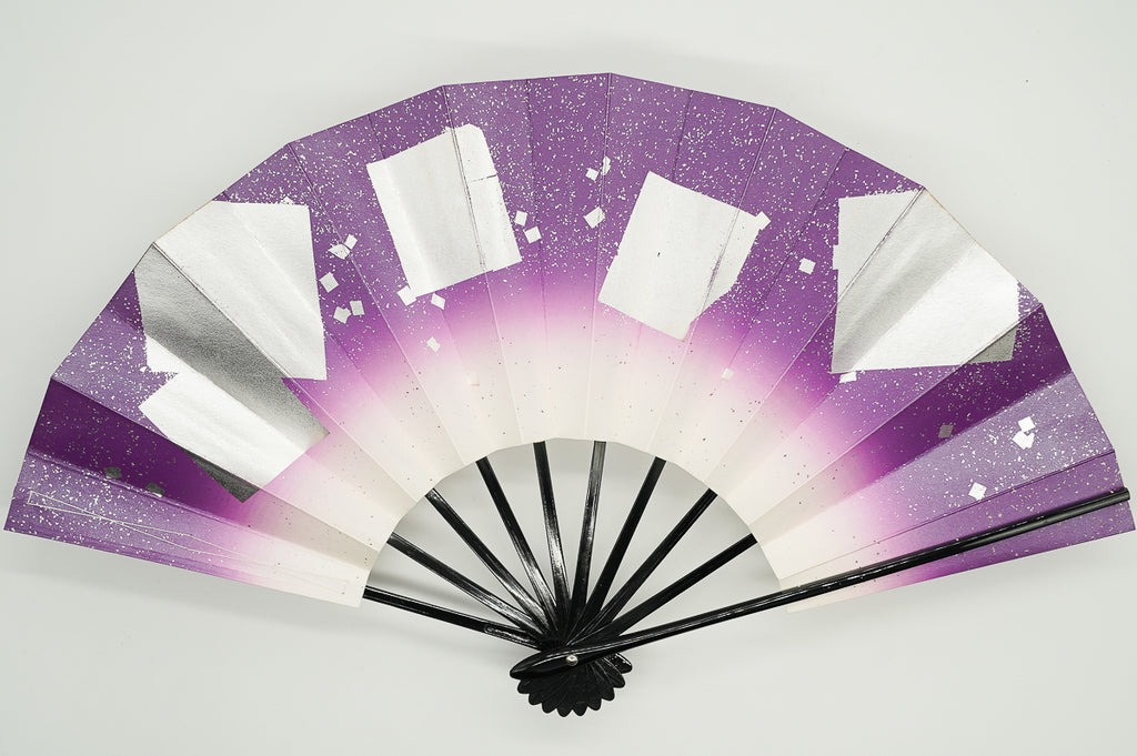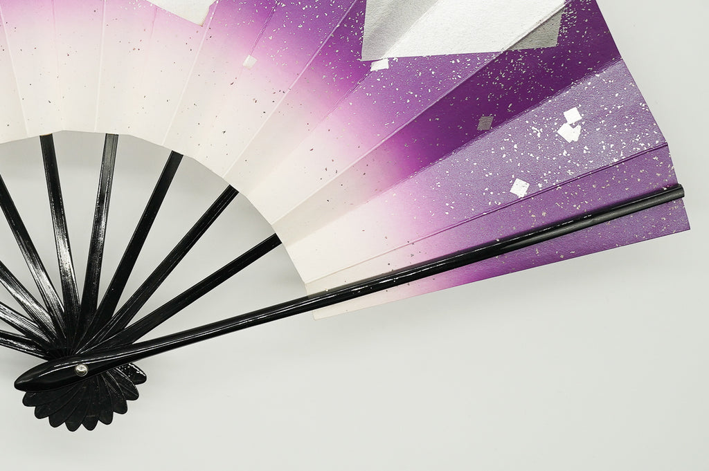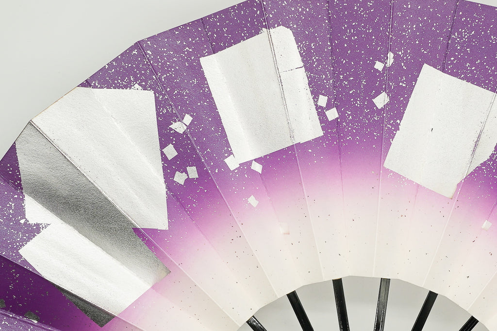 紫ぼかしに銀の色紙をあしらっています。明るく華やかな雰囲気です。