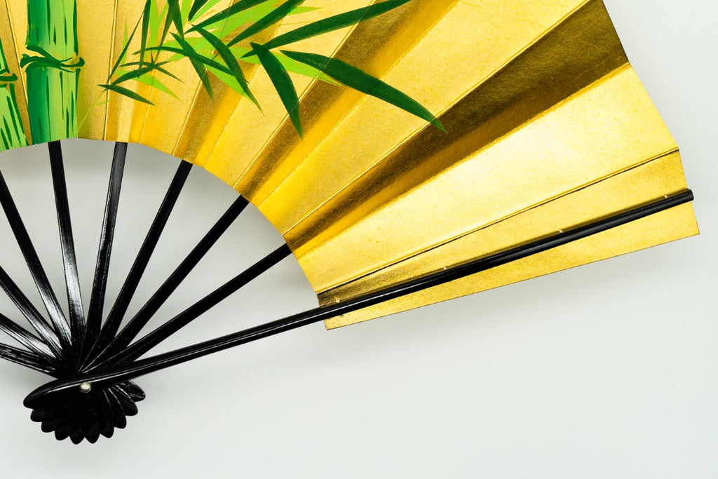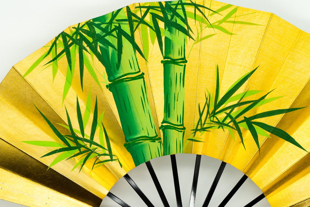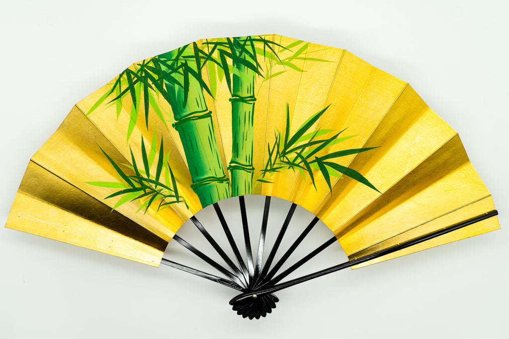 上質な金地の扇面に手描きの竹が描かれております。青々と伸びゆく竹が美しく、通年でご利用いただけます。