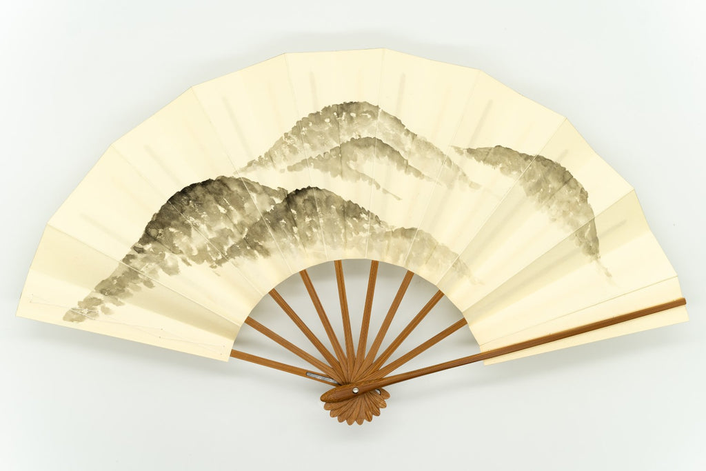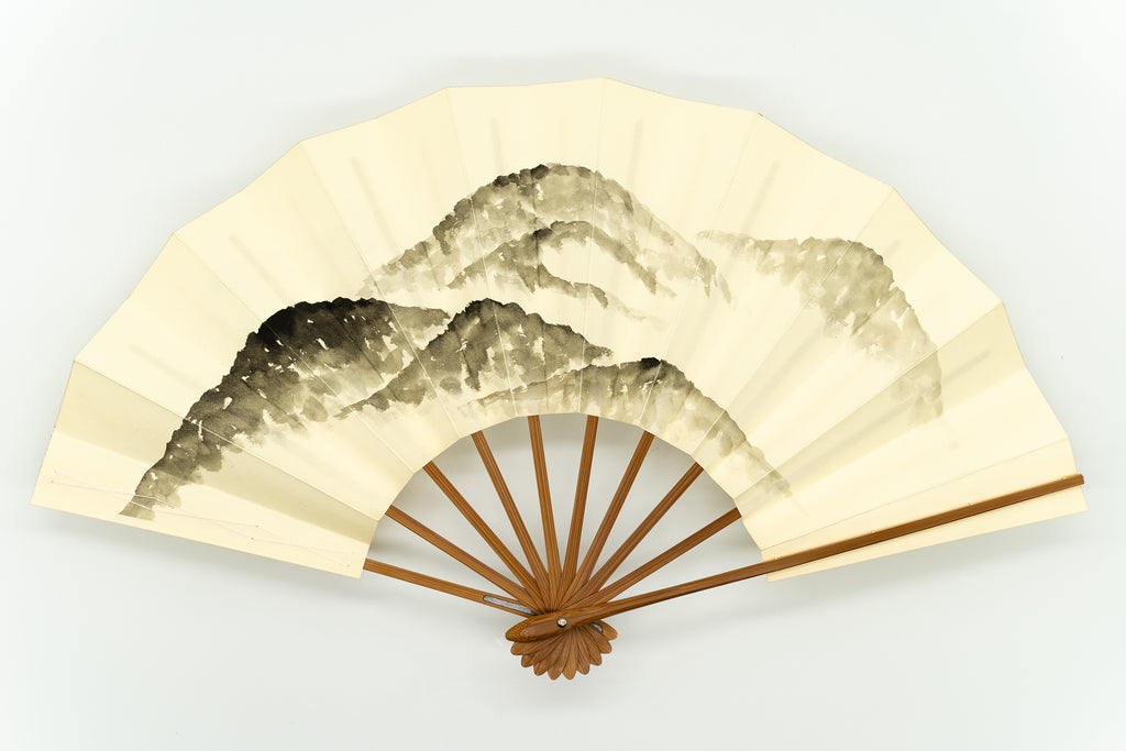 【ビンテージ品】鳥の子地に遠山を墨絵で描いています。点描風に描かれているためシンプルながら立体感があり、遠くから見ても存在感のある仕上がりとなっています。