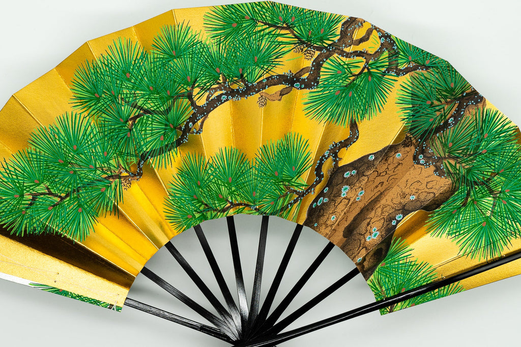 片面は金箔地、片面は銀箔地の扇面に老松が描かれております。通年でご使用いただけます。