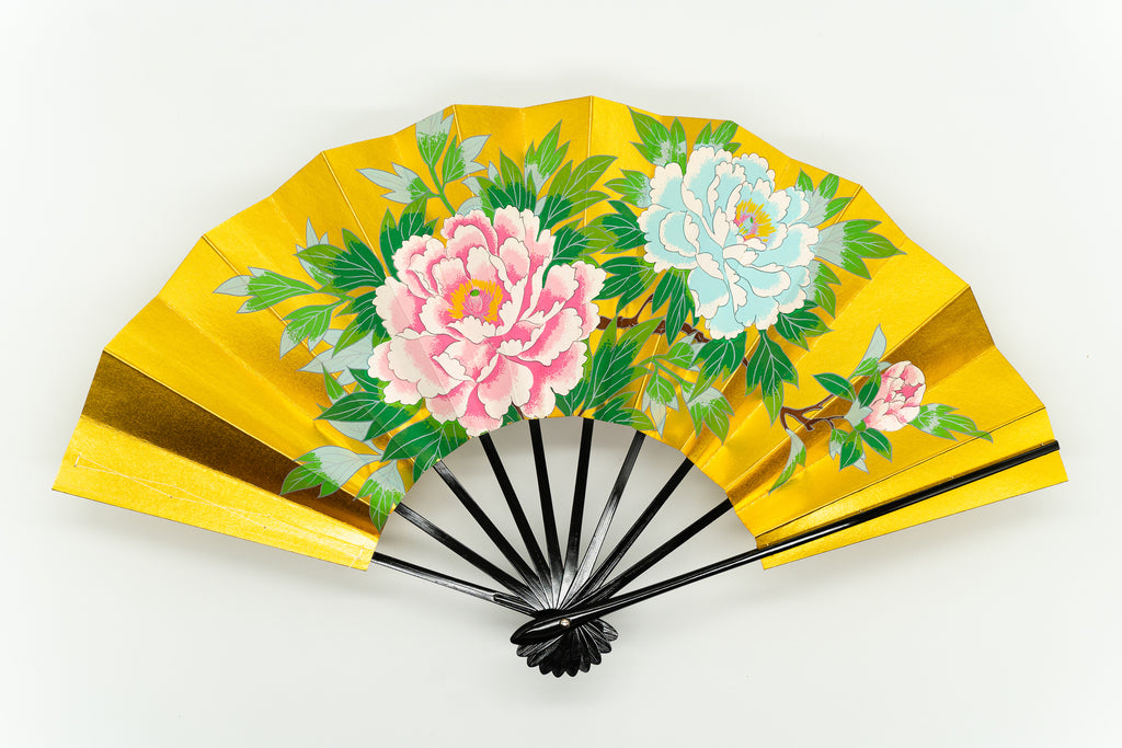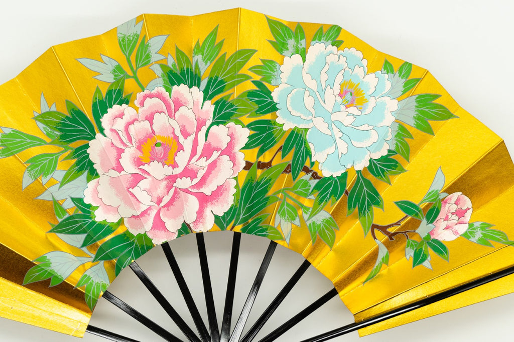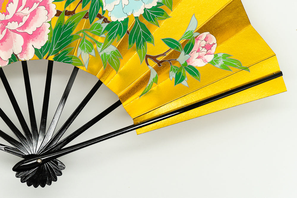 華やかな金箔地に明るい鮮やかなピンクと水色の艶やかな牡丹があしらわれています。金は古来より豊かさと権力の象徴であり、風水でも「富」「繁栄」「成功」を意味し金運や運気上昇に効果的とも言われています。