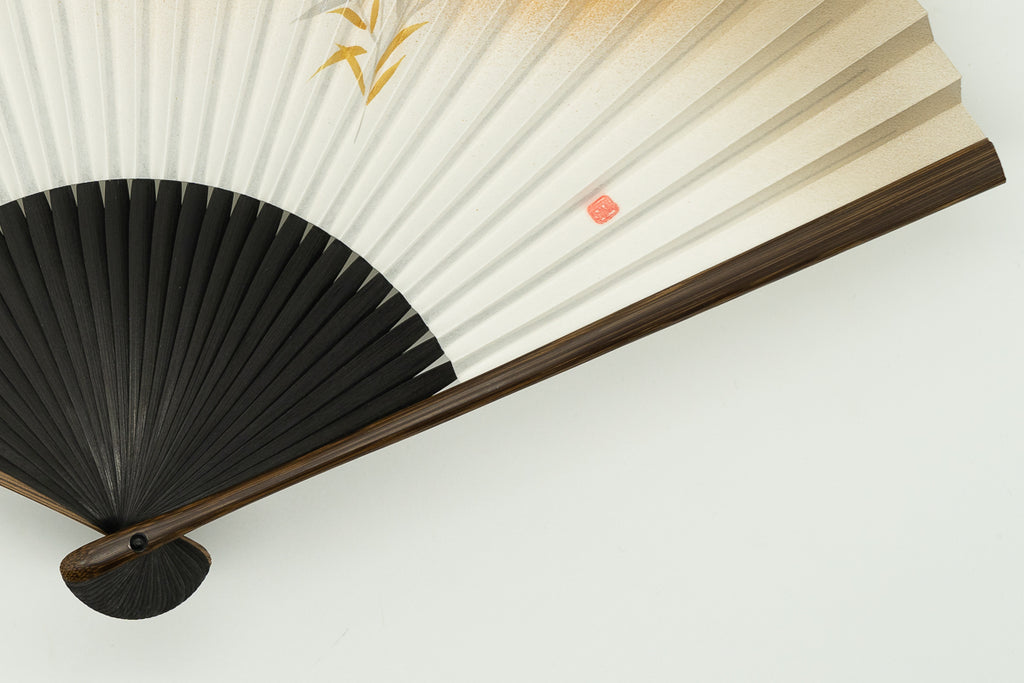 The calm color of the fan surface is accentuated by the Karaki-dyed ribs and black-dyed ribs, creating an elegant harmony. This is a recommended item for gifts.