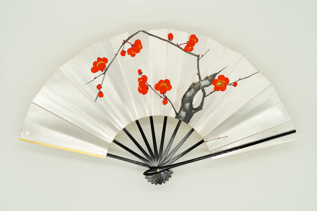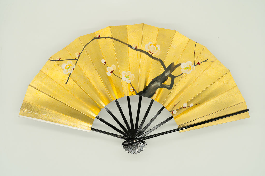 Gold and silver, red and white plum blossoms, hand-painted
